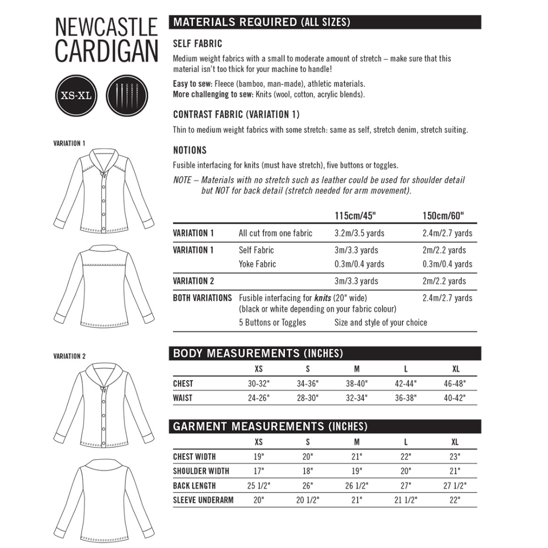 This piece sews up quickly in a forgiving knit and features several customizable details such as a shoulder and back yoke (easily included or left out), small or large collar, and decorative top-stitching. Instructions clearly indicate when certain details can be added or removed and contain tips on how to simplify sewing with knits.