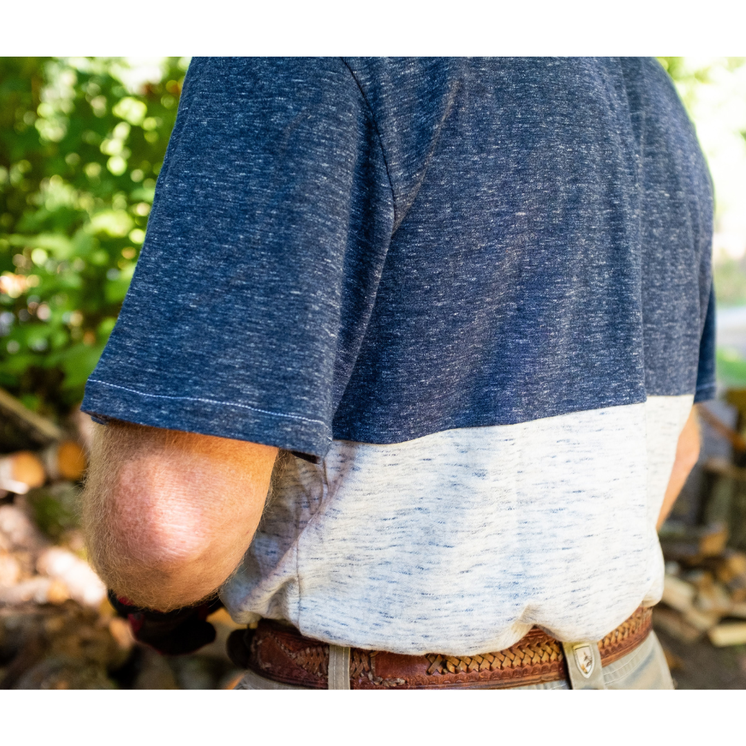 A classic relaxed fit t-shirt sewing pattern to fill your wardrobe with comfortable basics. This pattern is meticulously drafted to include a nicely fitted neckband, perfectly shaped armscye, and a long enough body to tuck in or leave untucked as desired. The sleeves are roomy enough to move unrestricted but are by no means baggy. Choose between short or long sleeves (finished with cuffs). Sew from one colour or use the colour blocked pieces. Add or leave off the chest pocket.